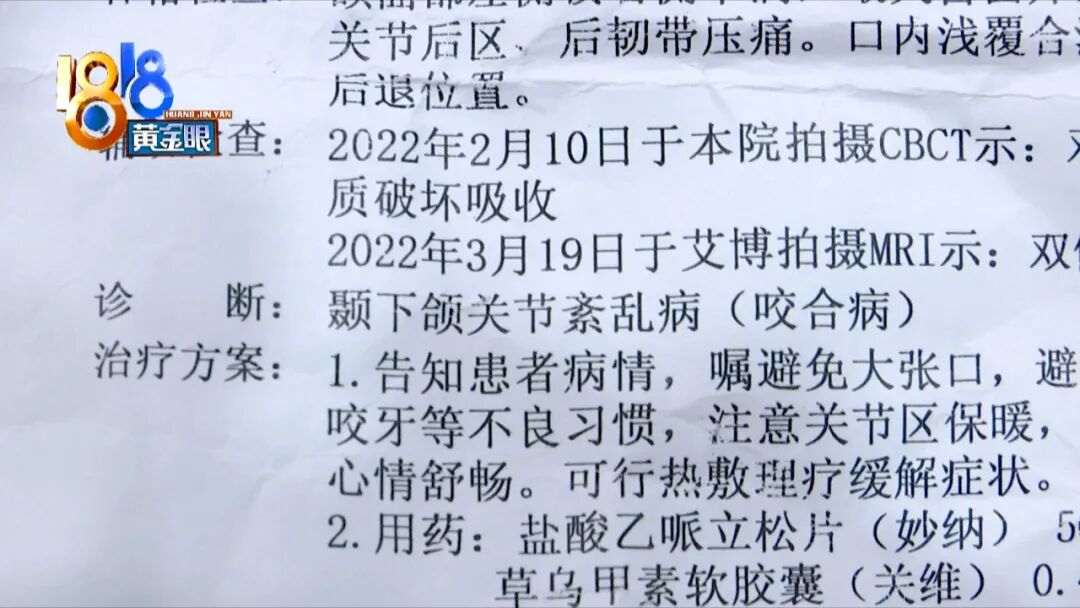 徐女士表示,最近这一年多,嘴部左侧关节一直有点疼痛。3月底,在另一家口腔医院被诊断为 颞下颌关节紊乱病。