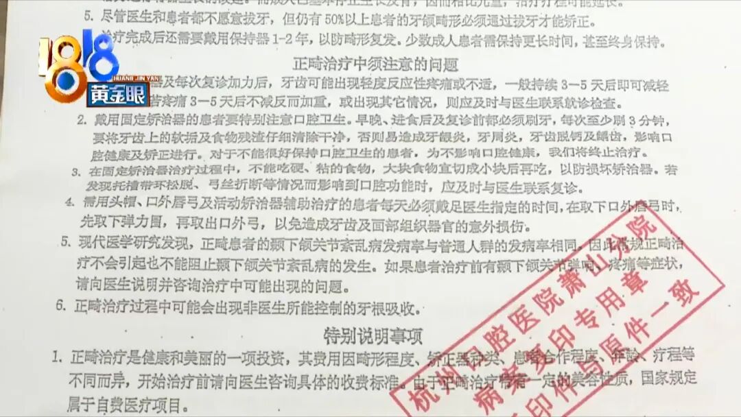 杭州口腔医院萧山分院医务科 陆医生:她治疗之前本身就有关节方面的问题和咬合方面的问题(有没有告知给她)告知给她,包括知情同意书上也进行签字(有没有在病历上写)病历上本身就有这么一条的。