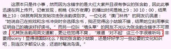 就连她道歉说“sorry”,都被按头“崇洋媚外”的罪名。