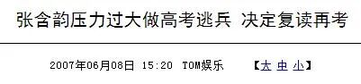 07年,张含韵原本应该参加高考,但因为准备不足,故而放弃。