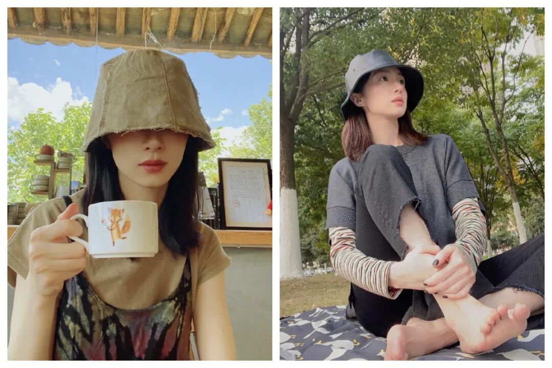 无论是妆容还是拍照风格,都从“甜美”进阶到了“叛逆”↓