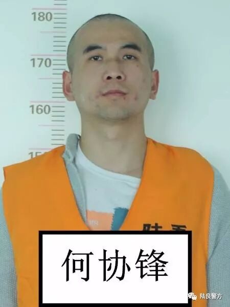 犯罪嫌疑人何协锋,绰号大疯子,男, 1989年10月20日生,家住陆良县同乐街道。