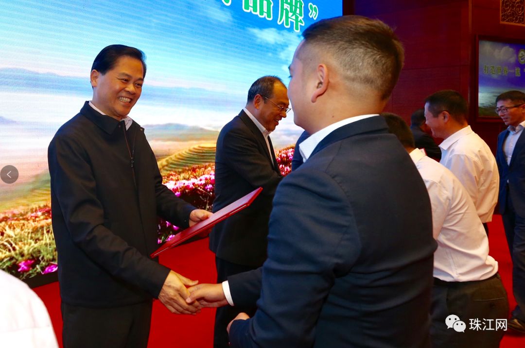云南省委书记、省人大常委会主任陈豪,省委副书记、省长阮成发,省委副书记王予波为获奖企业颁奖。