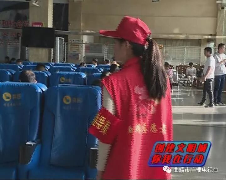 下午5点左右,在售票大厅及候车厅内,5名曲靖市中医医院志愿者对违反规定的市民进行劝导。