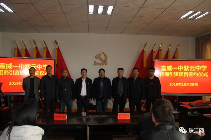 10月29日,宣威一中紫云中学招商引资项目签约仪式在宣威市教育体育局举行。宣威市教育体育局局长马现群与云南中南水利建设投资有限公司代表徐兴义一齐落笔签约,标志着双方正式启动合作建设民办学校——宣威一中紫云中学,共同推动宣威教育教学水平迈上新台阶。