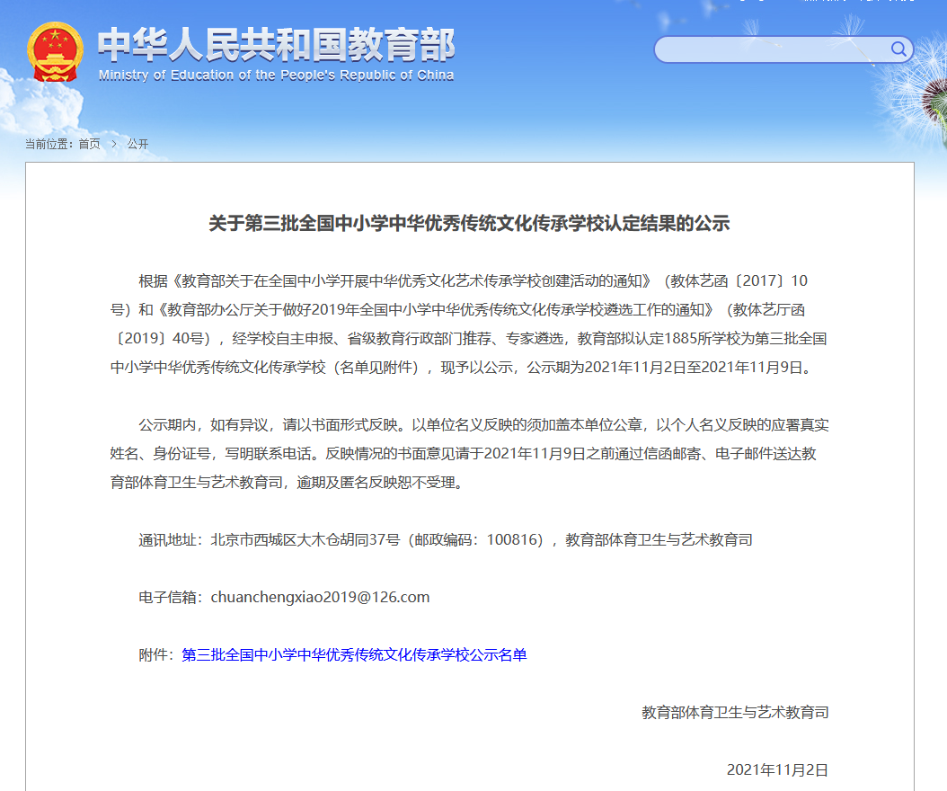 中华优秀传统文化传承学校公示名单