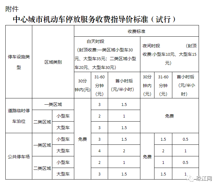 中心城市机动车停放服务收费指导价标准(试行)(详见附件)。
