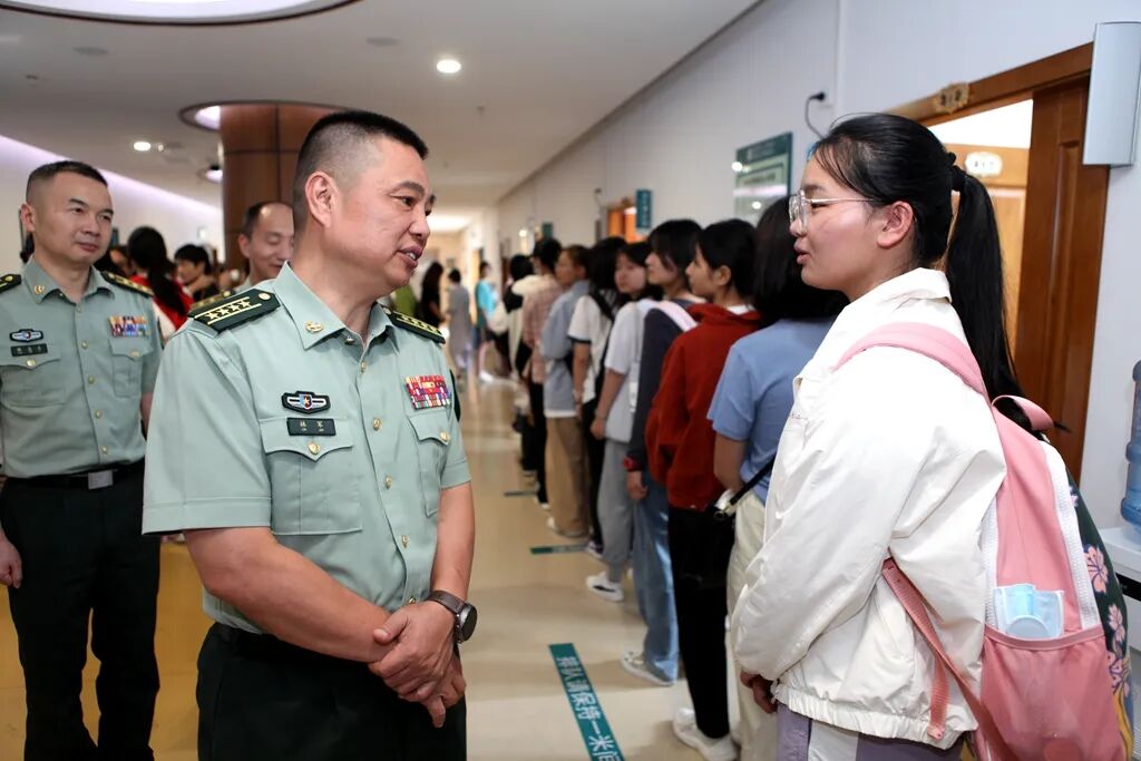 市征兵工作领导小组副组长、曲靖军分区大校司令员林军,市征兵办公室主任、曲靖军分区大校副司令员严泽平到现场检查指导体检工作。林军一行向医护人员询问体检细节,并与应征女青年亲切交谈,对她们参军报国热情给予赞扬,勉励应征女青年们坚定入伍决心,积极投身国防事业,同时叮嘱工作人员要严把征兵体检关,牢牢守住安全和廉洁征兵底线,确保高标准、高质量完成下半年女兵体检任务。