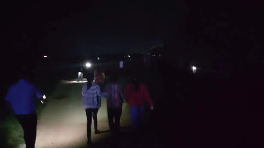 大家打着电筒一边搜寻