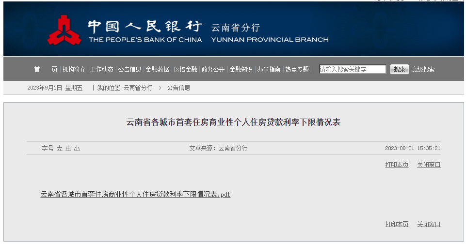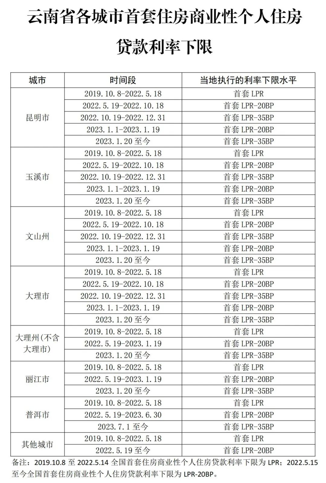 云南省各城市首套住房商业性贷款利率下限情况发布
