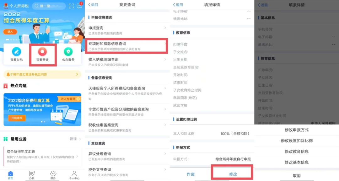 操作:打开个人所得税APP—点击我要查询—选择专项附加扣除信息查询—点击修改—选择要修改信息项目—确认修改即可。
