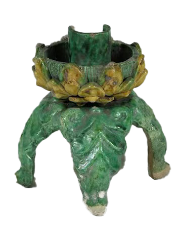 黄绿釉带座烛台