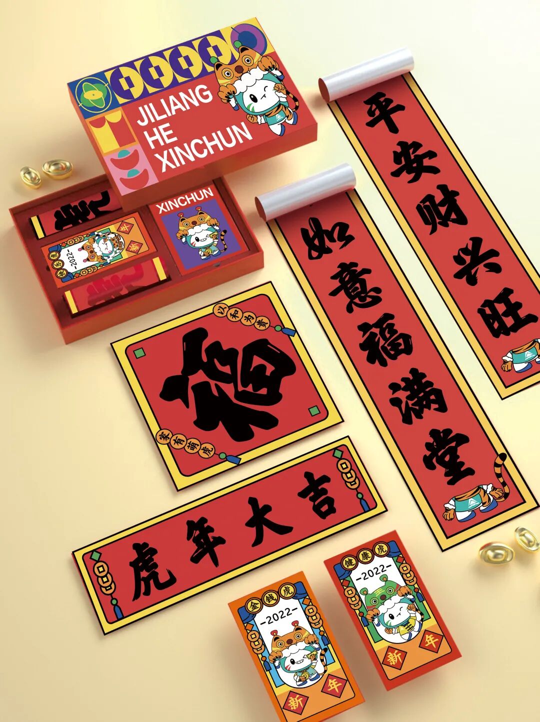 设计说明:作者选择了春联、日历等春节会用到的物品,将中量大独有的特色元素与虎年结合进行设计。