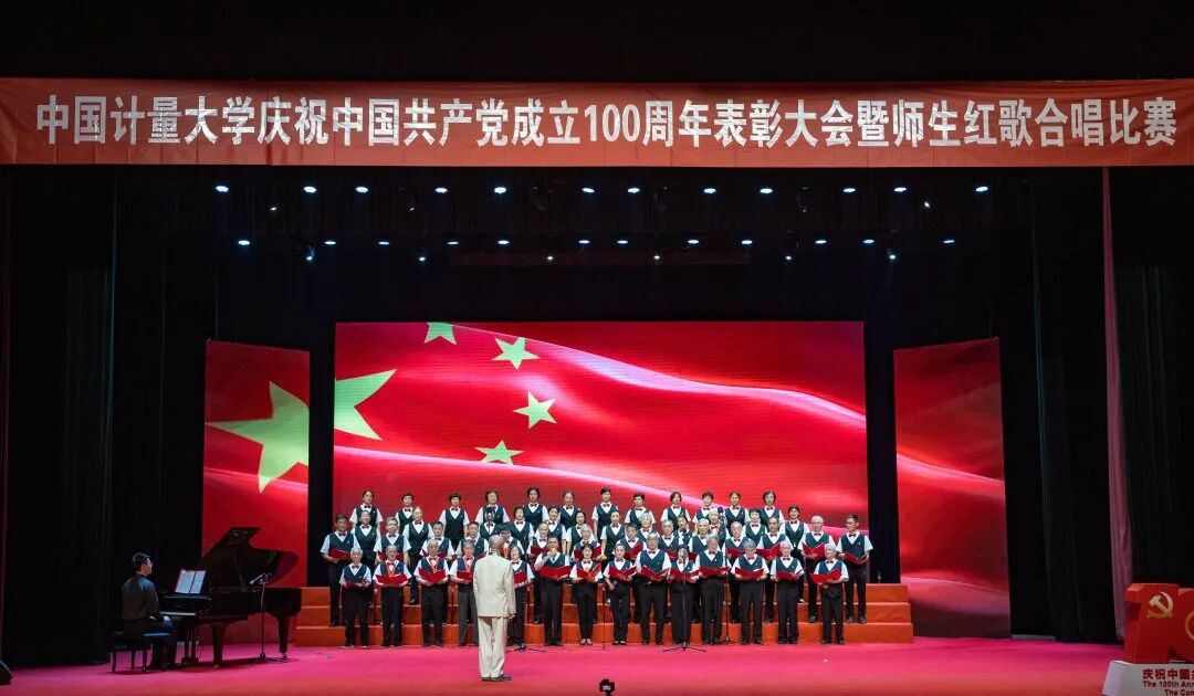 白衬衫搭配黑色马甲,穿上黑西裤,郑重地戴上红色领结,党徽在左胸前闪耀。老同志们昂首走上舞台,唱响原创歌曲《百年辉煌》。这是建党百年之际,学校师生红歌合唱比赛的现场。五星红旗下,那抹银色格外亮眼。