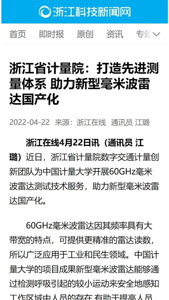 浙江省计量院:打造先进测量体系 助力新型毫米波雷达国产化