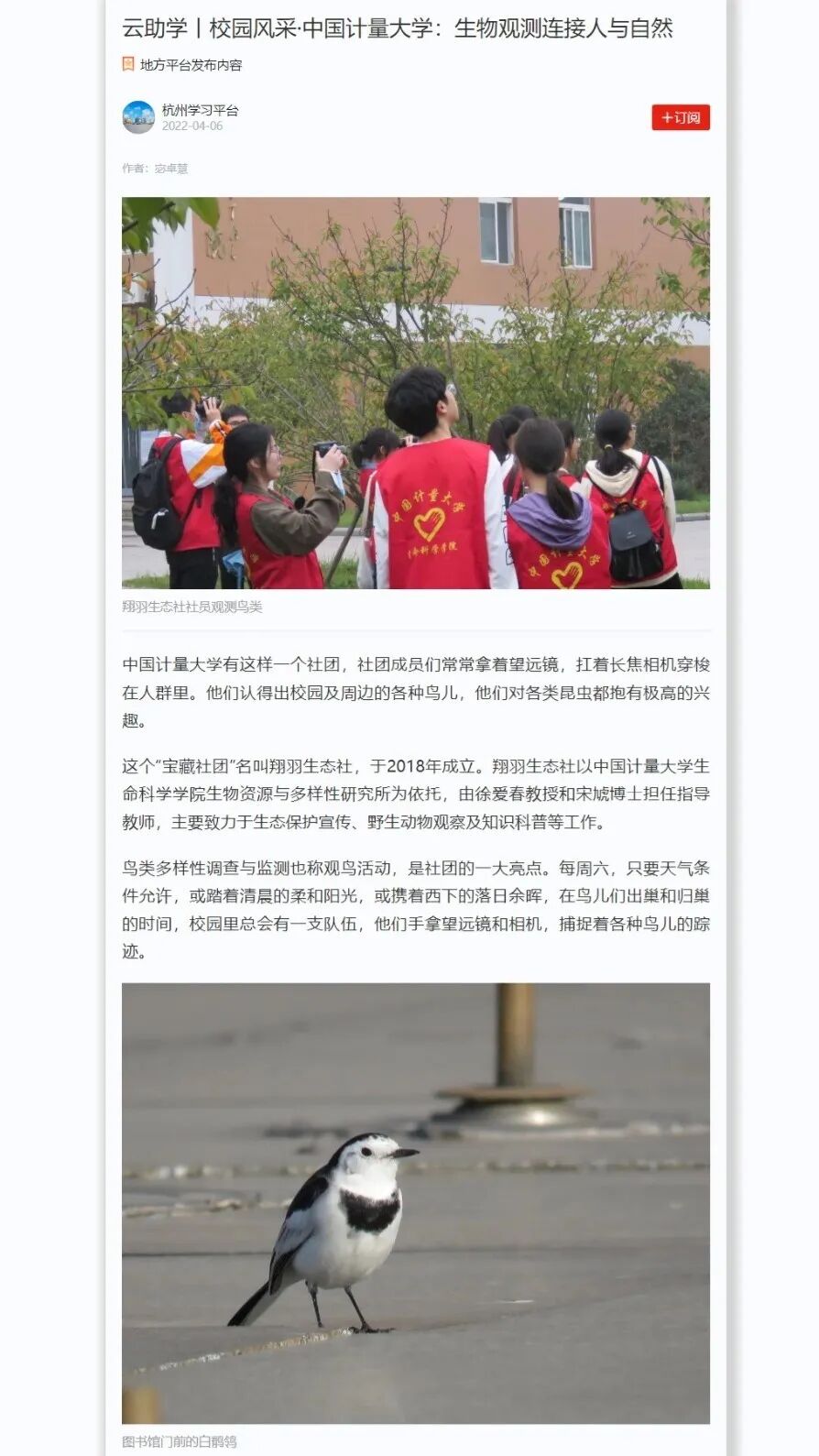云助学丨校园风采·中国计量大学:生物观测连接人与自然
