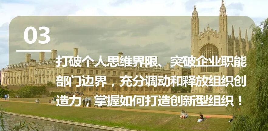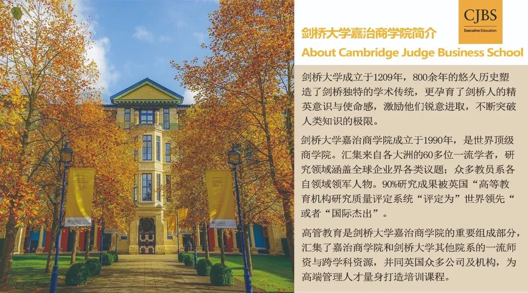 随着世界经济形势的转变和科学技术的不断进步,中国企业在世界经济变局中面临新的挑战与机遇。企业家如何在未来不确定的环境中带领企业持续创新、开拓市场、走向卓越,由北京大学汇丰商学院和剑桥大学嘉治商学院联袂打造的高管教育项目,旨在充分整合两所世界一流高校的学术资源,通过理论学习和实践互动的授课方式,帮助企业家充分调动个人和组织的创造力,全面提升企业创新与管理能力,助力企业在未来世界和中国经济的发展中不断取得成功。