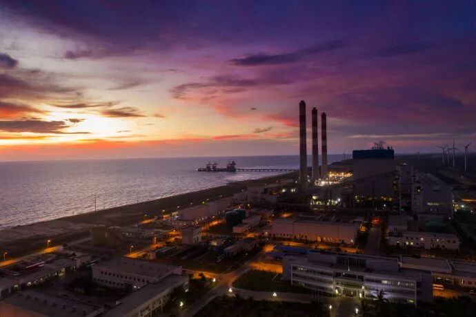▲夜幕中的普特拉姆燃煤电站(新华社)