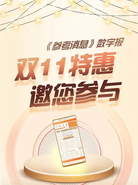 《参考消息》数字报“双十一”特惠活动火热进行中,限时秒杀上线。《参考消息》年度数字报原价128元,秒杀价108元,数量有限,先到先得,售完即止。
