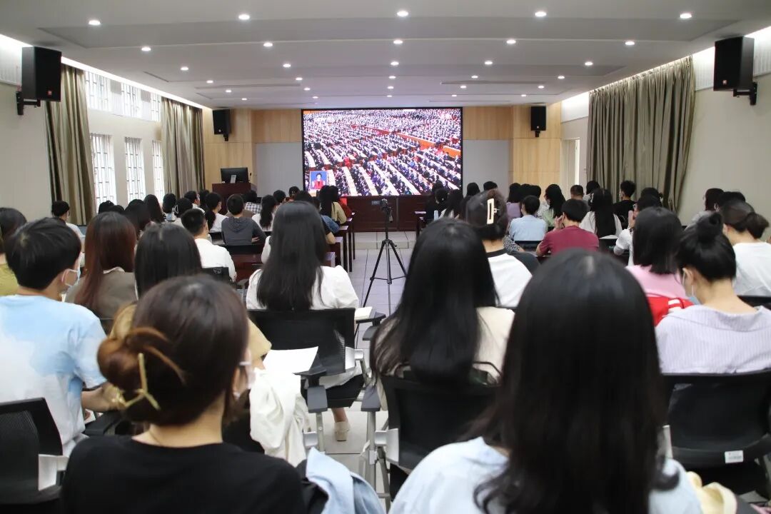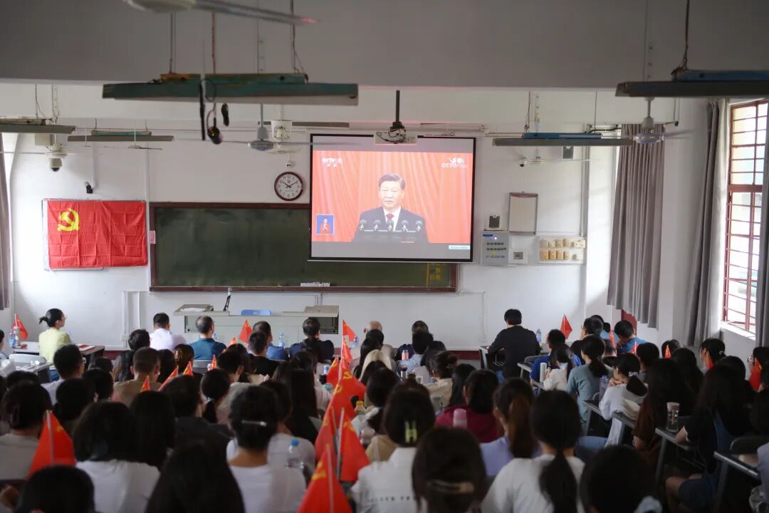 校领导深入联系学院与师生共同收看大会盛况。校团委组织校级学生骨干、青马学员代表、研究生支教团成员、团支部代表等集中收看大会直播。学校各级团学组织在第一时间多种形式组织收看学习。
