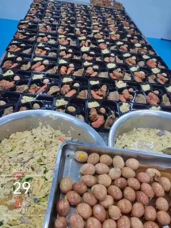 分工包装、装箱,从晚上7点一直进行到凌晨5点。但能让每一个考生和考务工人员都吃上饱腹的米饭,我们就非常开心!