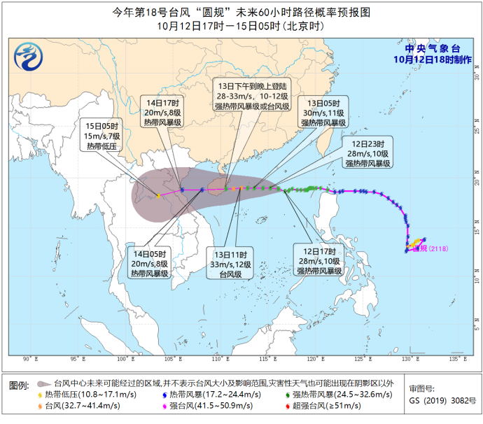 后天“圆规”趋向越南,华南一带的风雨将逐渐减弱。