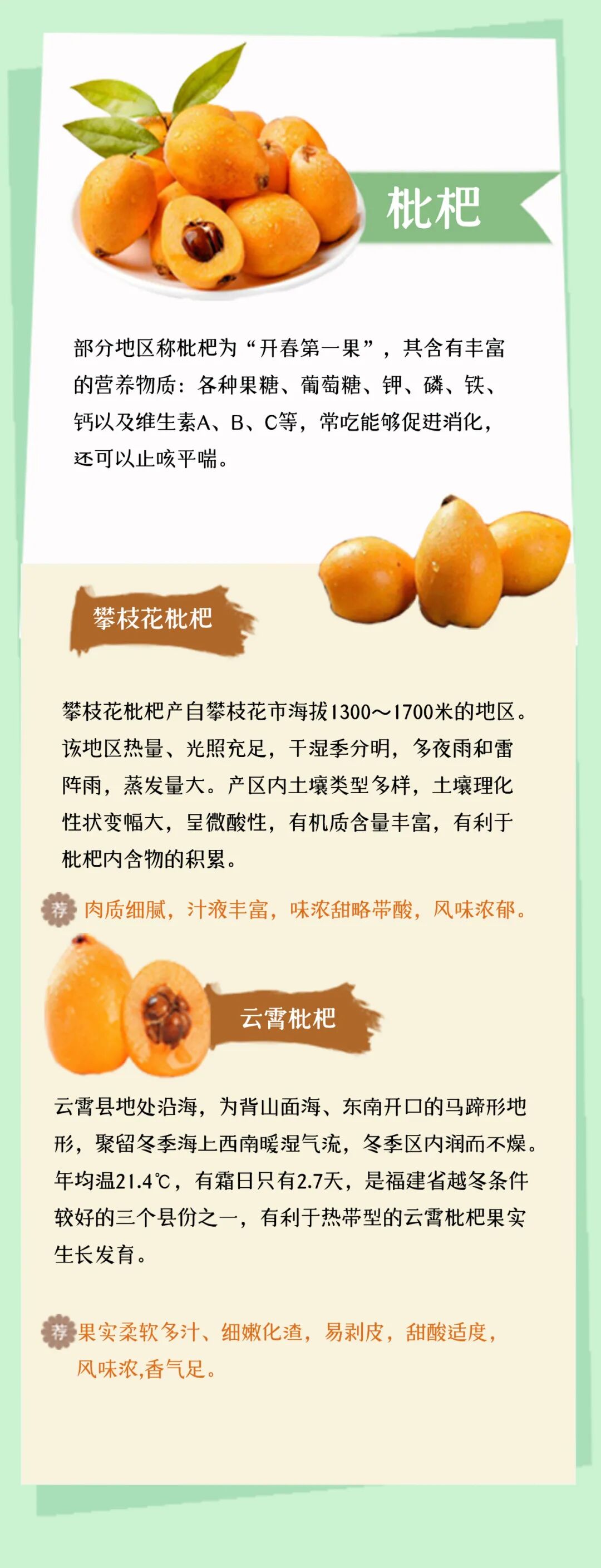 枇杷有岭南开春第一果之称,立春时节多吃枇杷可以帮助预防感冒。枇杷含有丰富的营养物质,如各种果糖、葡萄糖、钾、磷、铁、钙以及维生素A、B、C等,常吃能够促进消化,还可以止咳平喘。