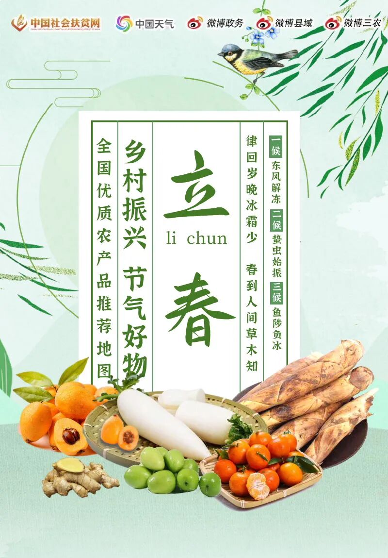 古人重视立春,有迎春之仪。那么立春节气的应季美食有哪些呢?一起来看看由中国天气网、中国社会扶贫网联合推出的“乡村振兴·节气好物”全国优质农产品推荐地图立春篇吧!