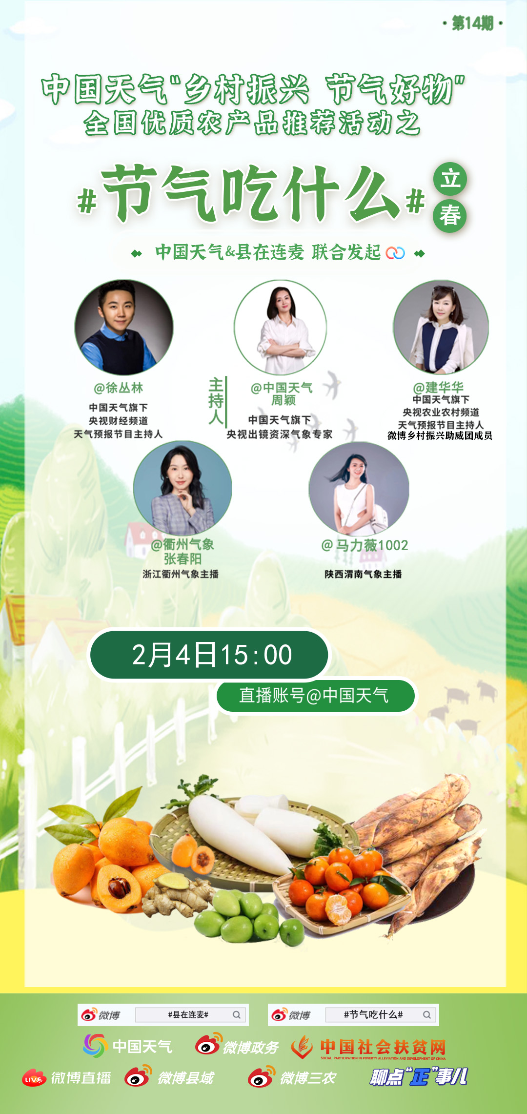 2月4日15时,我们还将在@中国天气 微博发起连麦直播,不要错过立春节气好物,记得关注直播哦。↓↓↓