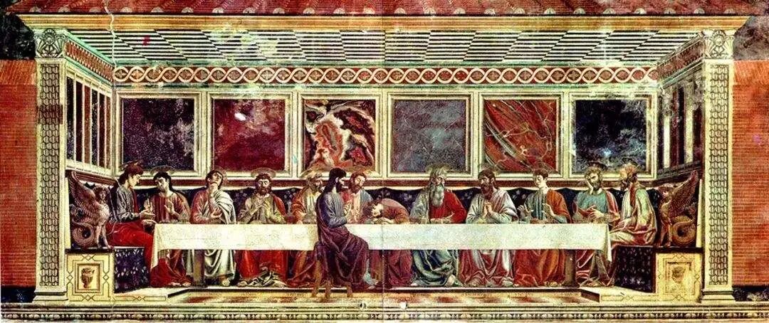 吉兰达约在万圣教堂画的《最后的晚餐》是这幅画的原型,它的年代是1480年,大约要比达·芬奇的早十五年。