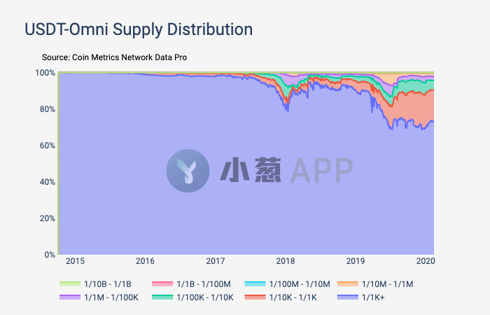 值得注意的是,USDT-Omni的分配趋势在2018年1月大盘价格泡沫前开始逆转并变得更加集中。