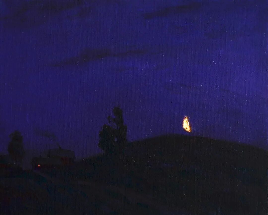 雪是纯洁的,也是迷幻的,紫和蓝之间,大地的银装在来回变色……并非难得一见的奇景,Dobrynin画的大多是俄罗斯普通的乡村风光。也许是天气的原因,画面总显得灰灰的,晴天也不过于兴高采烈。沉寂、朦胧、稀松平常,是Dobrynin绘画的特质。就像每天上演的日升月落,云聚云散,我们未及在意失去了多少的奇迹,但哪怕只是一瞥看见天边燃烧的晚霞,那恒常的美丽依然伴在身边,便令人心安。