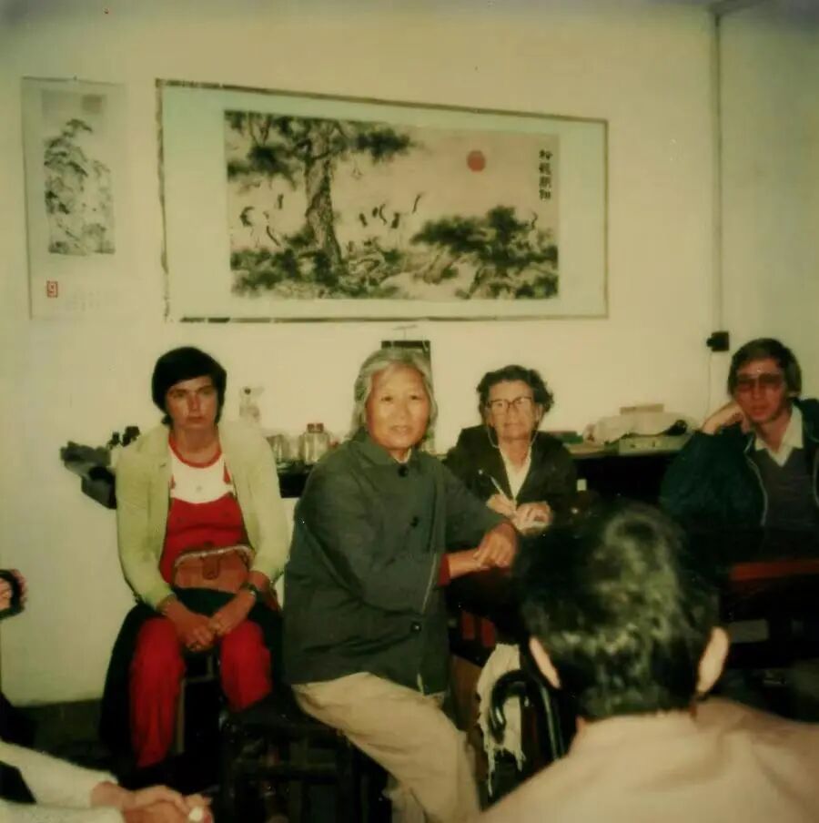 ▲丁海清和外国来宾合影;莫惠英和外国来宾合影