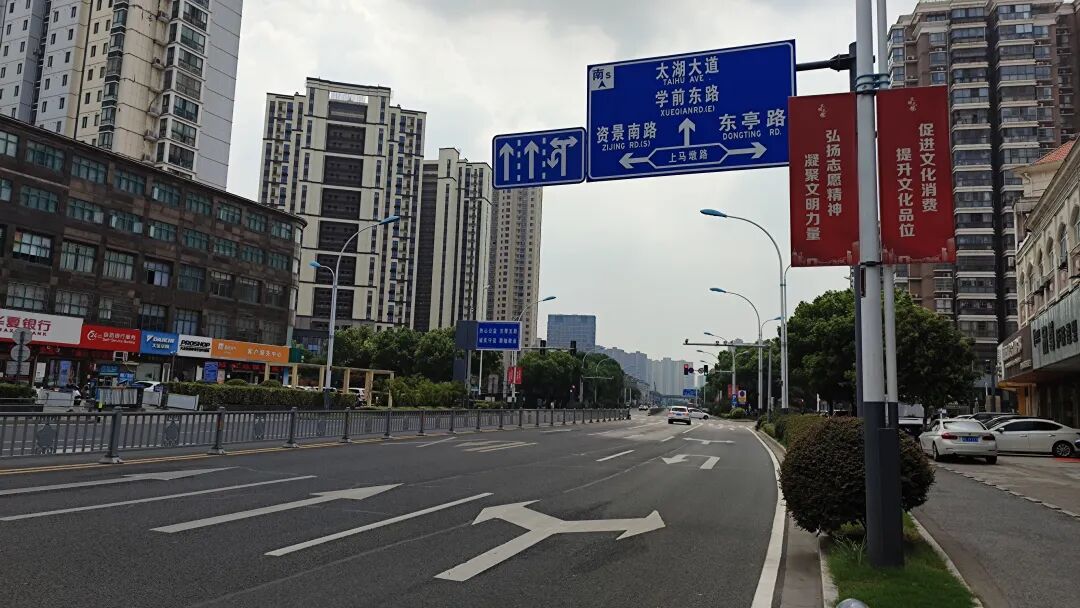 正如小秦印象中那样,早些年青祁路梁溪路路口由北往南方向的渠化模式,如今在不少高架下来的路口普及使用。