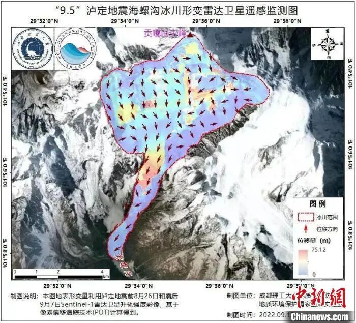 泸定地震致贡嘎山主峰东侧冰川形变