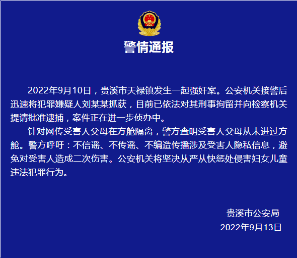 江西警方通报:强奸案嫌犯已被刑拘,受害人父母从未进过方舱