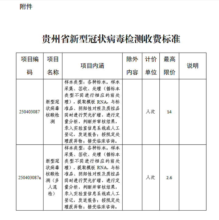 核酸检测有新消息。从8日起,贵州省的疾控检测机构、公立医疗机构开始执行新的核酸检测价格,单人单管最高14元/人次,多人混检最高收费标准调整为2.6元/人次。这是自2022年5月底国家医保局发布要求下调核酸检测价格通知以来,第一次由省级医保局统一下调核酸检测的混检价格至3元/人次以下。
