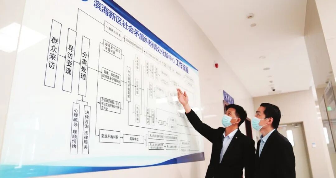 2020年5月20日,建立市、区、街道(乡镇)三级社会矛盾纠纷调处化解中心,老百姓解决矛盾纠纷“只进一扇门”,天津市成为首创。滨海新区社会矛盾纠纷调处化解中心。(本报资料照片)