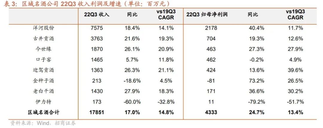 全国性次高端收入增速24.6%>区域名酒增速17.0%>高端白酒增速15.1%;