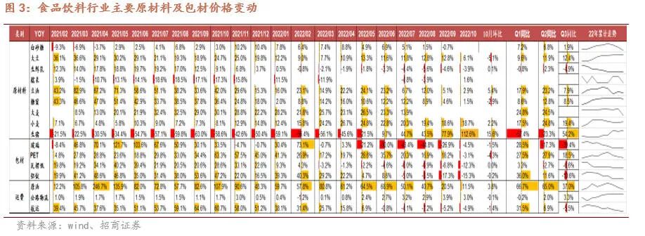 休闲食品:双节动销符合预期,连锁单店略有预期。洽洽Q3 瓜子稳健增长,坚果场景恢复增长提速,双节备货及动销均复合预期,提价对冲成本上涨推动毛利率恢复。连锁业态中,绝味单店环比略有改善,鸭副成本上涨下毛利率继续承压。巴比单店逐月恢复,团餐增速阶段性回落,毛利率低于预期主因新工厂投入一次性摊销增加及华东以外收入占比提升。桃李动销受疫情、高温及停电停产等因素影响,返货、折扣增加导致毛利率下滑。