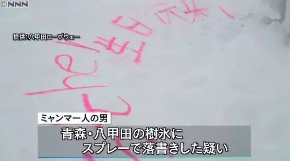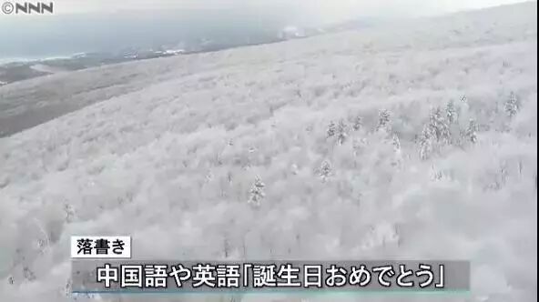 今年1月,日本青森县八甲田山上的知名景观“树冰”遭到游客用粉色荧光喷漆涂鸦,现场留下了用英文和中文喷写的“生日快乐”。