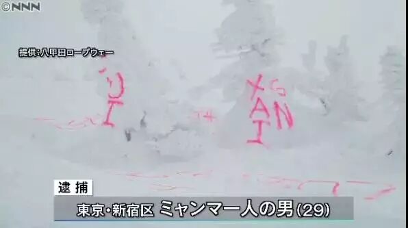 据日本NHK新闻和《朝日新闻》报道,日本警方通过目击情报进行了搜查,发现一名在东京新宿区居住的缅甸男子(29岁)有较大嫌疑。因使用荧光喷漆涂鸦的行为妨碍了索道公司的业务,22日,日本警方以“威力业务妨害罪”逮捕了这名缅甸男子。