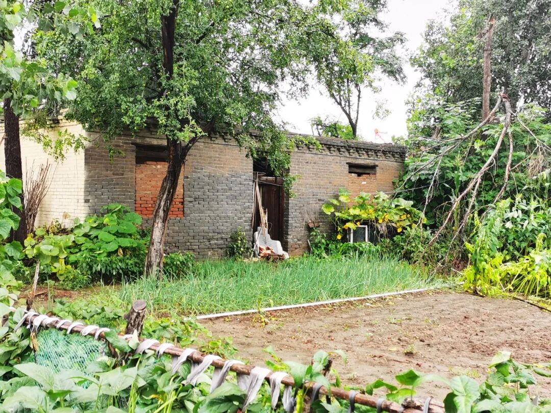 在村子西面的西二街,路旁有一栋青砖旧房——赵智勇曾经的家。屋顶已完全坍塌,只剩下四周的砖墙,正门的一扇木门已破旧不堪。旧屋前方的一片地,被竹子和柴杆围成了菜园,里面种了一些蔬菜。