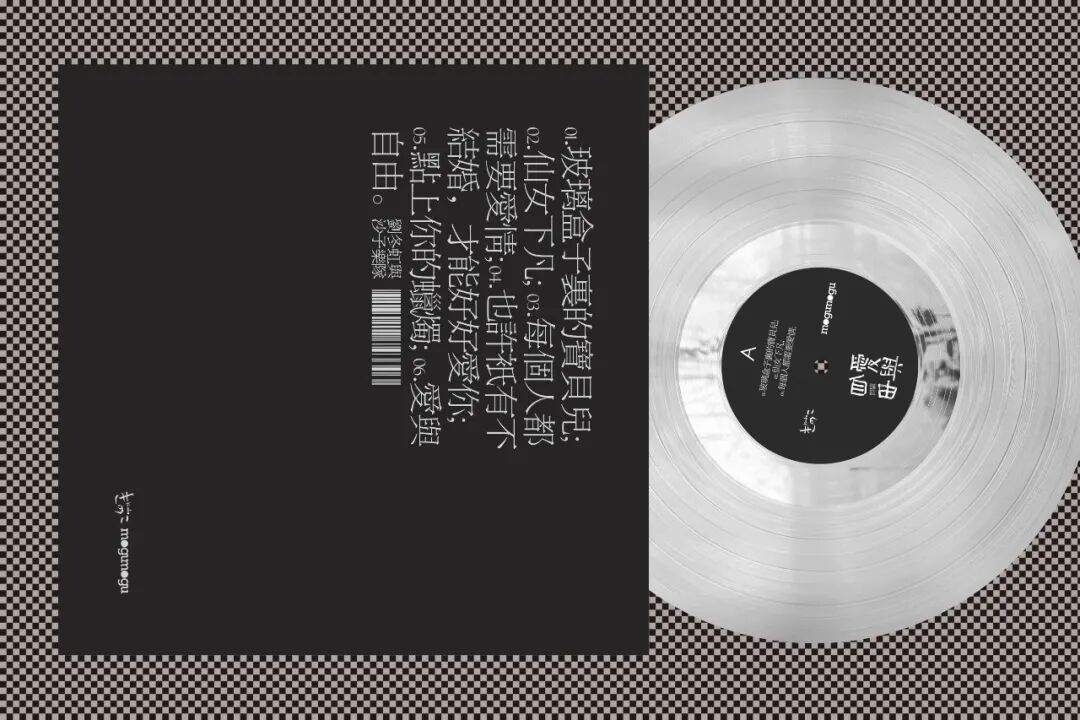 胶片为12寸,150克透明胶,封套设计采用350克黑卡纸烫银。