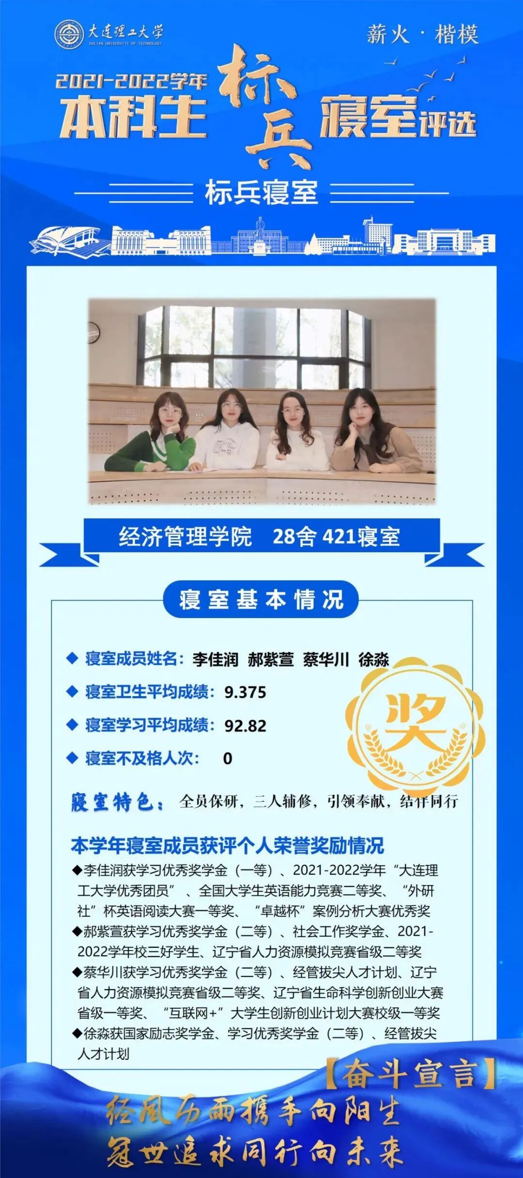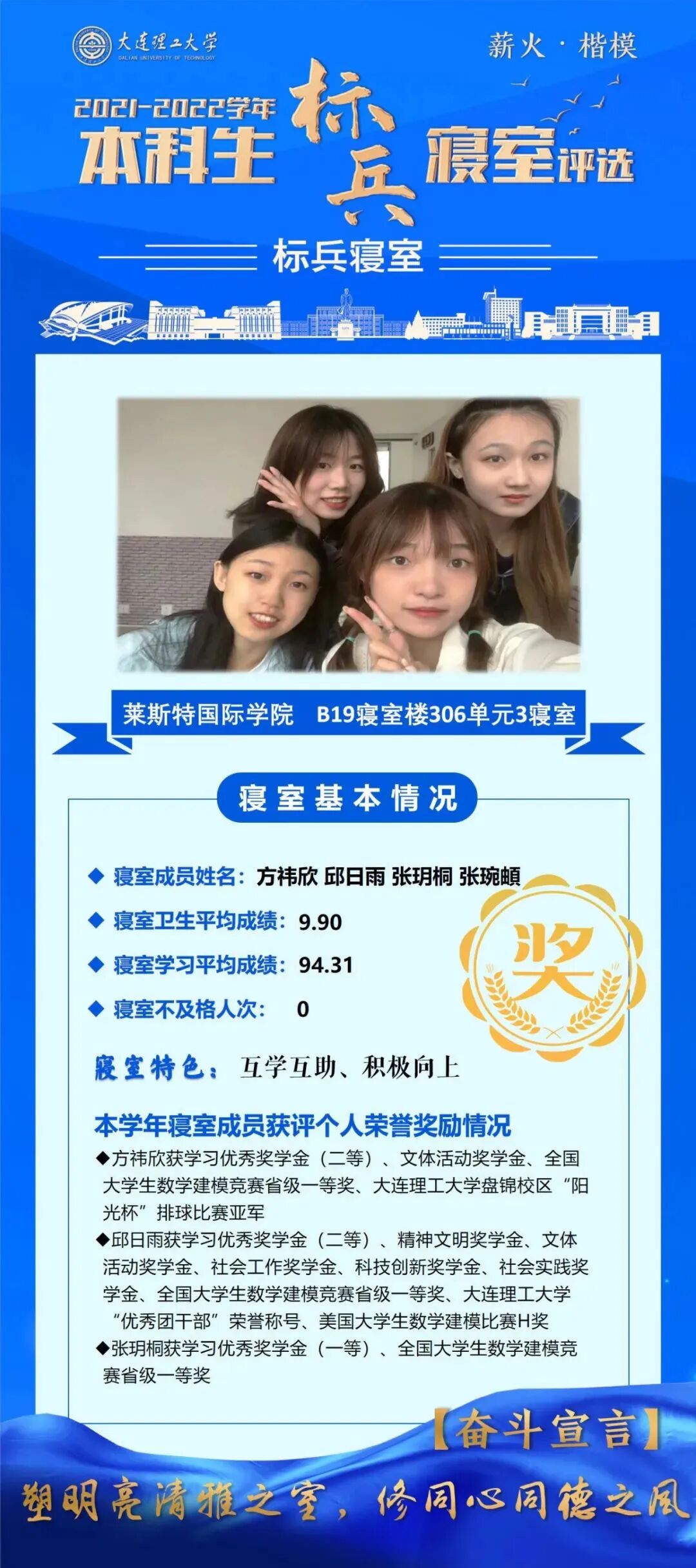“本科生先进寝室”荣誉称号