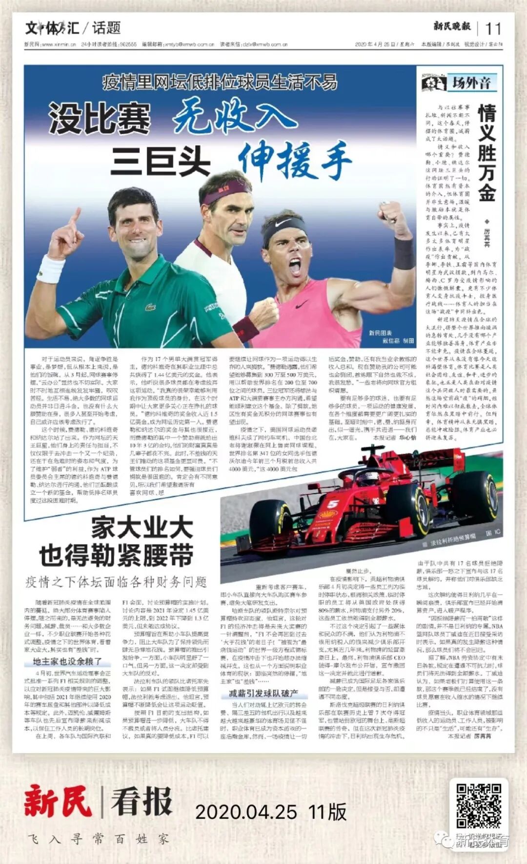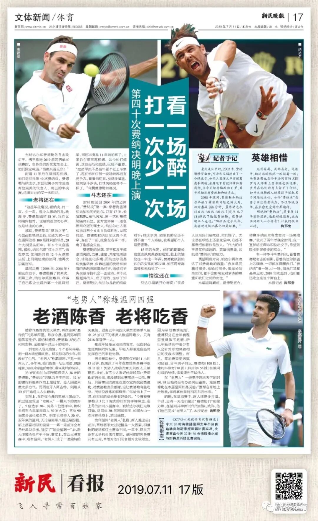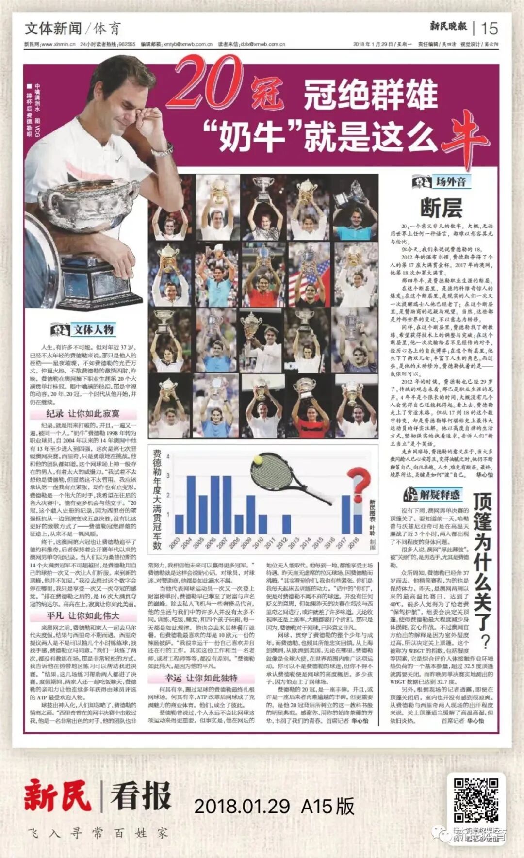 以下选取了本报近年来报道费德勒的数个版面,记录下曾经有他相伴的赛场青春……