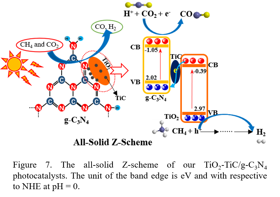 本研究为Z型异质结TiO2-TiC/g-C3N4高效光催化DRM的设计提供了依据,并为低温低压光催化反应提供了一条节能途径。TiC作为光催化中的电子介质,为研究活性光催化剂提供了新的思路。