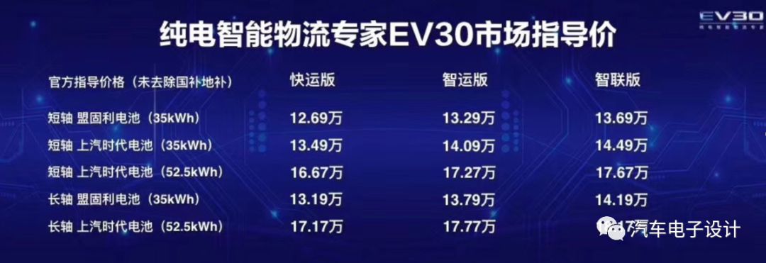 探讨新上市上汽大通物流车EV30,电池“多版本配置”