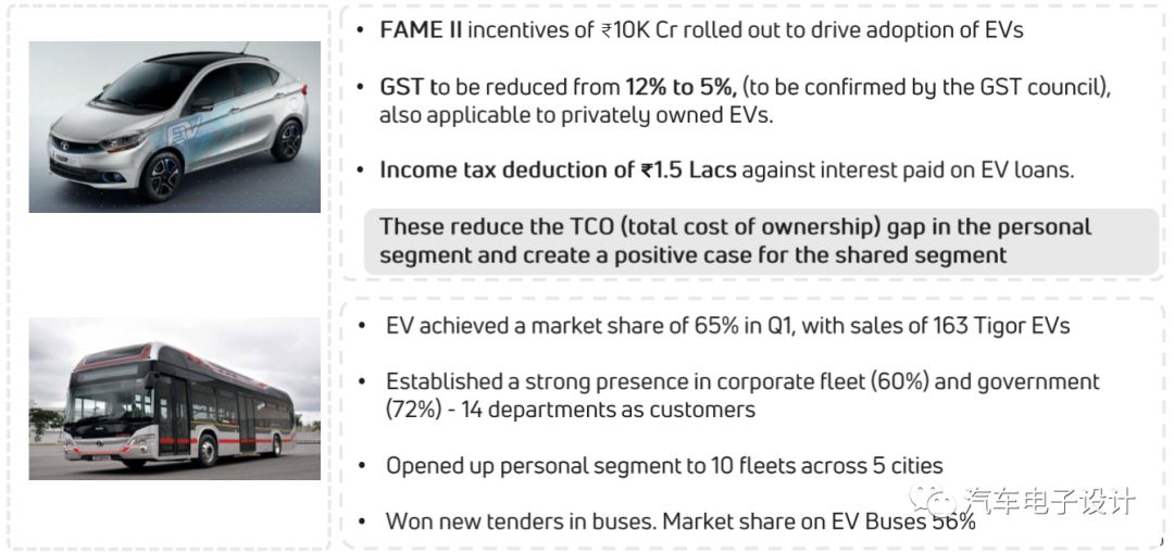 从塔塔在印度的计划可以看,随着印度的汽车工业发展进入瓶颈期,印度版本的电动汽车刺激计划也逐步展开,吸引了马恒达、塔塔和现代等几家企业的关注。