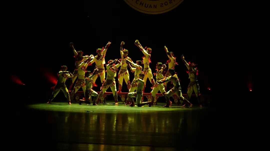 我校的原创舞蹈《巴山铰子》在闭幕式舞台上惊艳亮相,通过“铰子”这一乐器展现生活中互相逗趣的场景,铰响全场,地域特色十足,表演兼具时尚性与现代感,赢得现场观众阵阵掌声。